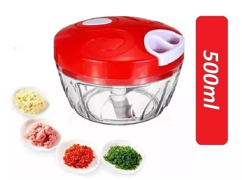 PROCESSADOR MANUAL DE ALIMENTOS e TEMPEROS 500 ml - Processa e Tritura Também conhecido como: Miniprocessador manual de alimentos, cortador e picador de temperos manual, mix manual, triturador manual de legumes Ideal para preparo de todos os tipos de legumes e verduras, possui 3 lâminas giratórias em inox com acionamento manual através da corda retrátil, Processa e tritura de uma forma muito mais fácil, rápida e sem bagunça. Facilita e agiliza os processos dentro da sua cozinha. Ocupa pouco espaço, é bastante resistente e super fácil de limpar. Cores vermelho e Preto - sujeito a disponibilidade de estoque