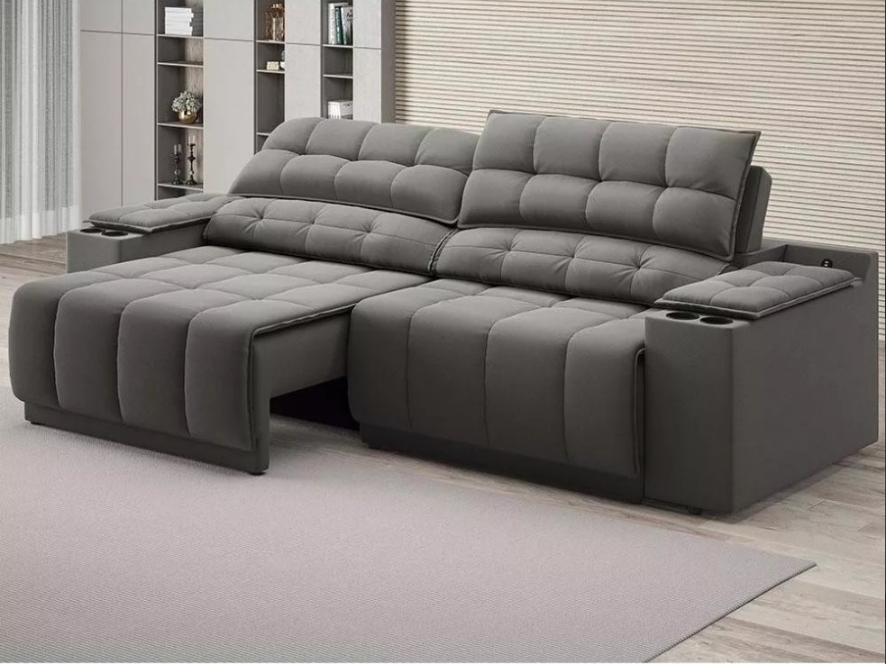 MODELO: Sofá Canto 5 Lugares Qatar MARCA: Selmer COR: Marrom TECIDO: Suede LUGARES: 5 Lugares ASSENTO: Espuma D23 BRAÇO: Espuma D12 ENCOSTO: Fibra + Flocos PÉS: PVC QUANTIDADE DE PÉS: 10 ESTRUTURA: Madeira De Eucalipto GARANTIA: 3 meses